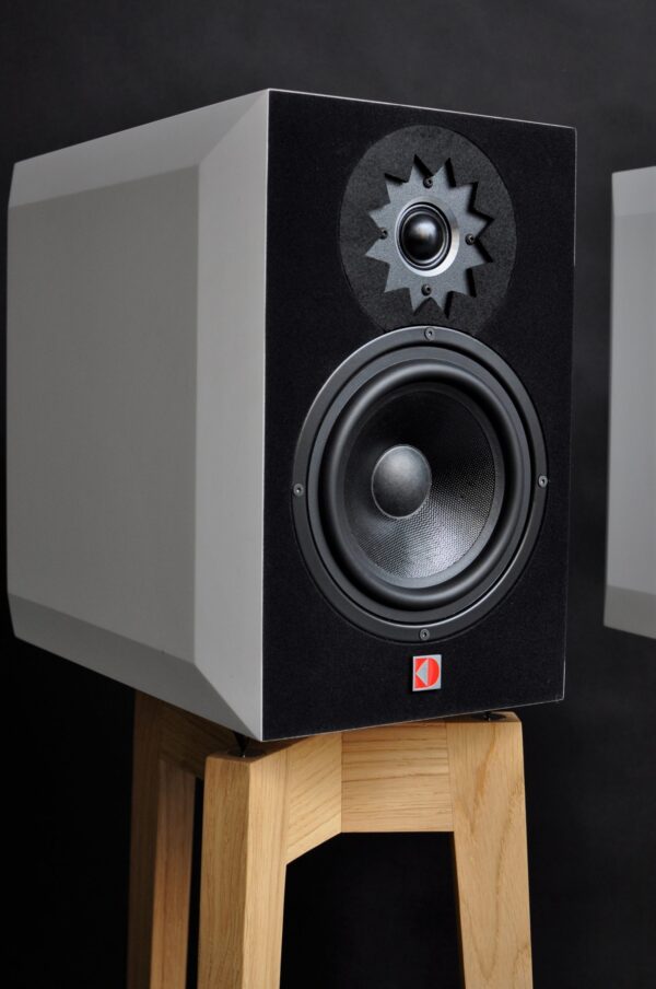 • Punkt podziału zwrotnicy: 2 kHz, nachylenie filtrków 6dB/okt dla głośnika niskośredniotonowego i 12dB/okt dla głośnika wysokotonowego