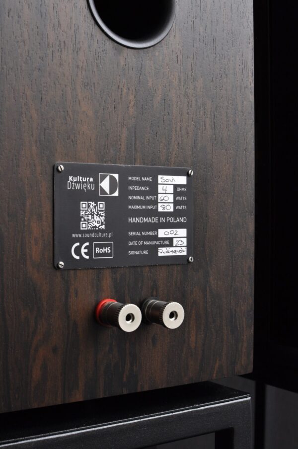 Soul to kompaktowa kolumna o objętości zaledwie 10 litrów, wyposażona w przetworniki renomowanej firmy SB Acoustics. Znajduje się w niej 5-calowy woofer z aluminiowym odlewanym koszem i polipropylenową membraną oraz 1-calowy tweeter z tekstylną kopułką i komorą rezonansową. Staranne rozmieszczenie przetworników na froncie kolumny ma na celu zmniejszenie efektu dyfrakcji i poprawę promieniowania pozaosiowego.