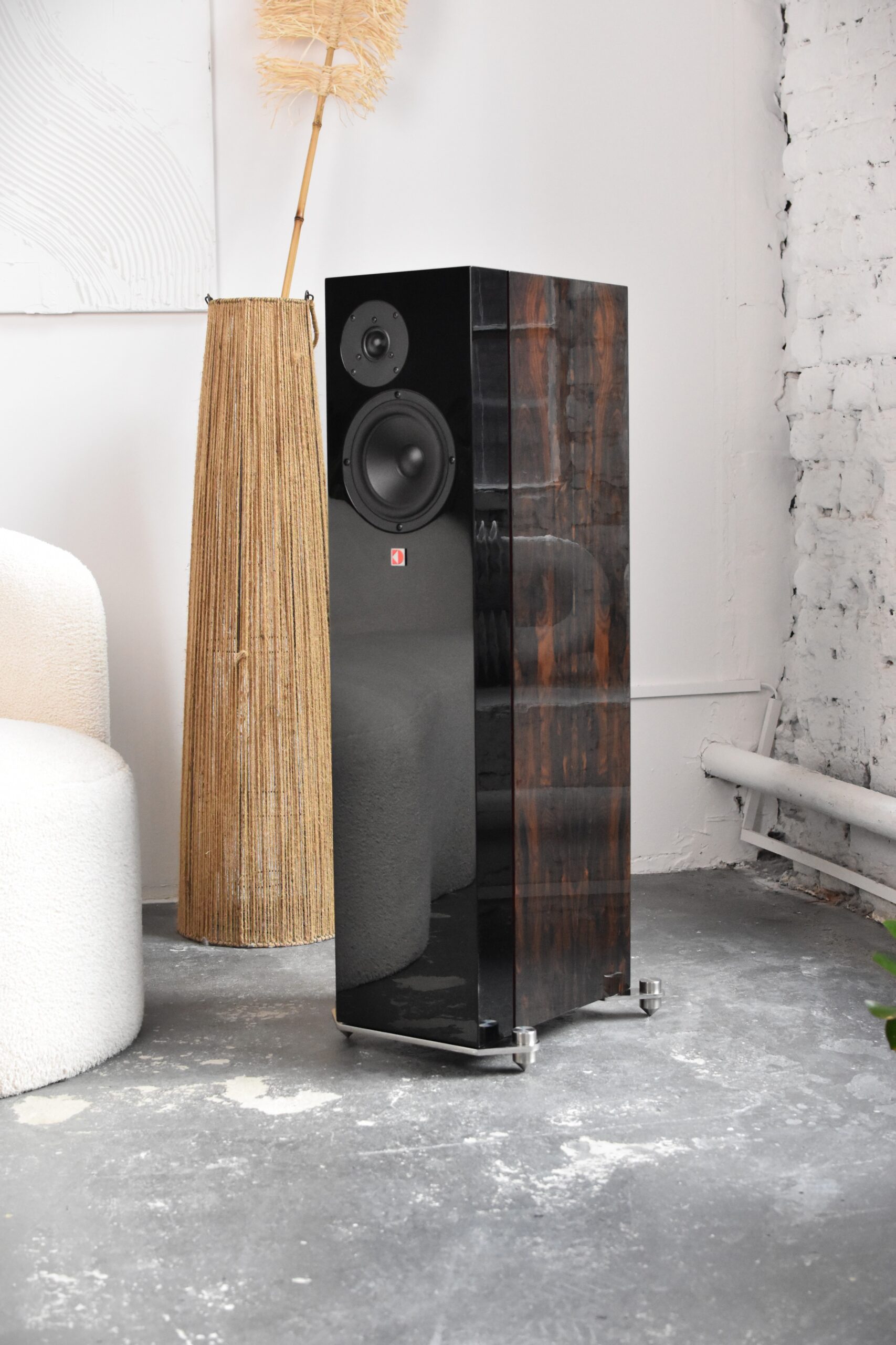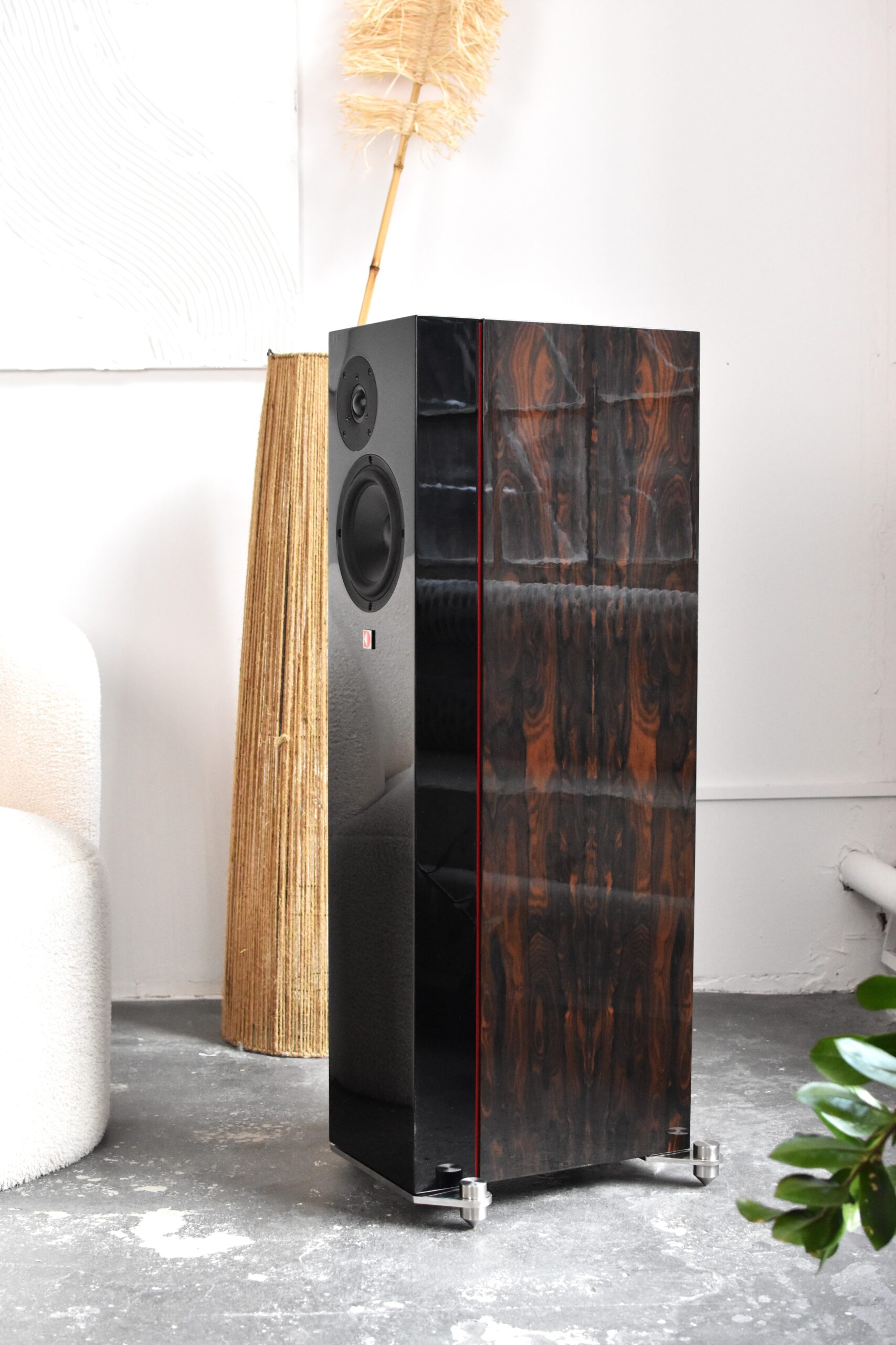 Całość dopełnia eleganckie wykończenie powierzchni naturalnym fornirem, który nie tylko podkreśla jakość wykonania, ale także nadaje kolumnom unikalny, ręcznie wykończony charakter. Każda para wyróżnia się indywidualnym rysunkiem słojów, co sprawia, że kolumny stają się nie tylko źródłem wyjątkowego dźwięku, ale także stylowym elementem wystroju wnętrza. Ich obecność w pomieszczeniu wprowadza atmosferę prestiżu i elegancji, harmonijnie łącząc funkcjonalność z estetyką.